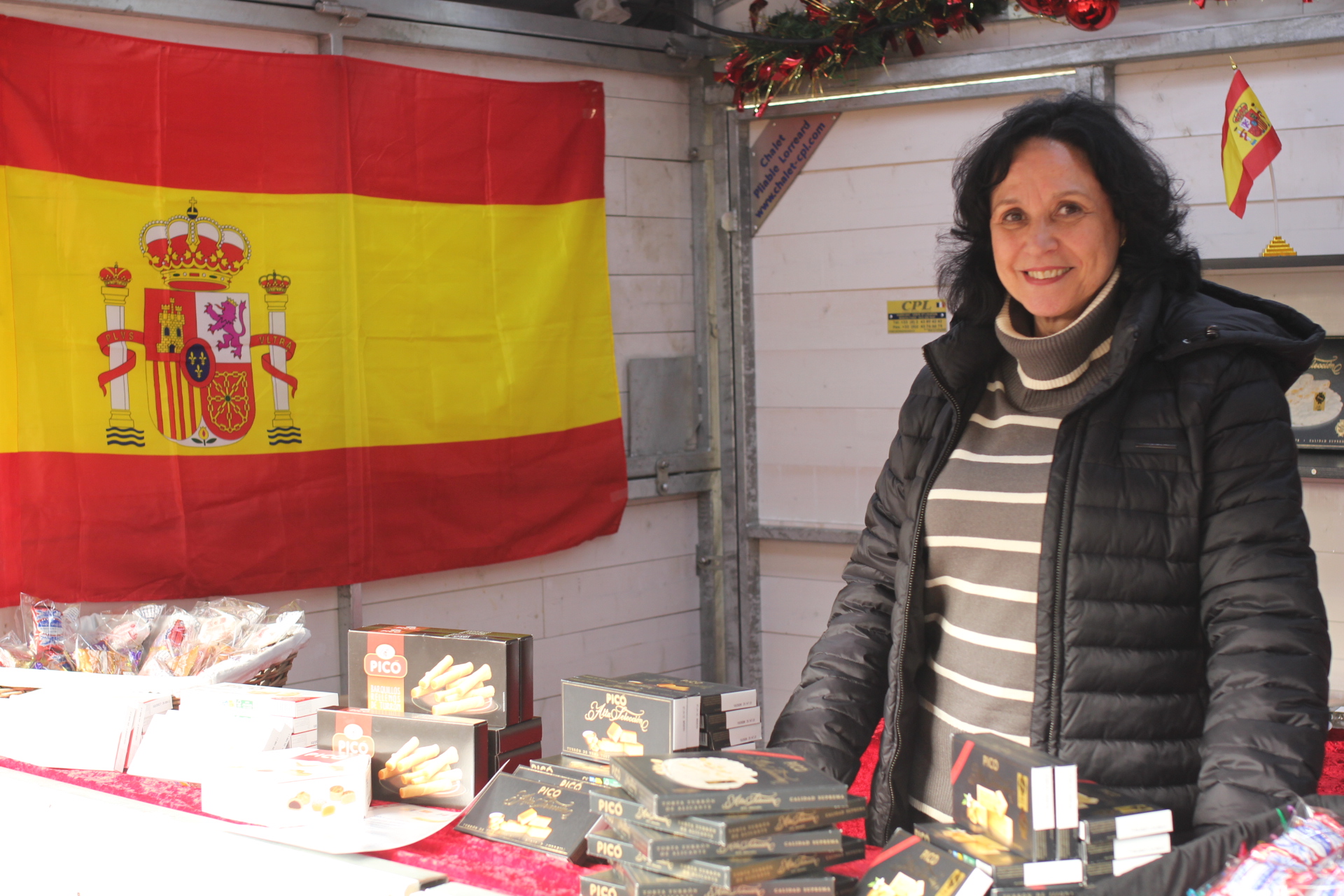 Les spécialités espagnoles au marché de noël du Vésinet, sur le stand de Villenueva de la Canada, ville jumelée en Espagne.